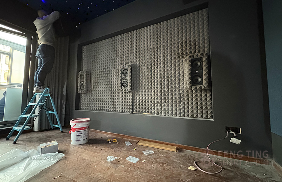 然后是隔音,重点是减少声音外传和外界声音传入。比如观影时音响声音太大,容易影响家人和邻居;外界的噪音进来,也会破坏观影体验。隔音处理就是通过材料和施工,打造一个“声音屏障”,常见的隔音材料有隔音棉、隔音板、低频陷阱等,墙面、地面、门窗都需要做相应的隔音处理。